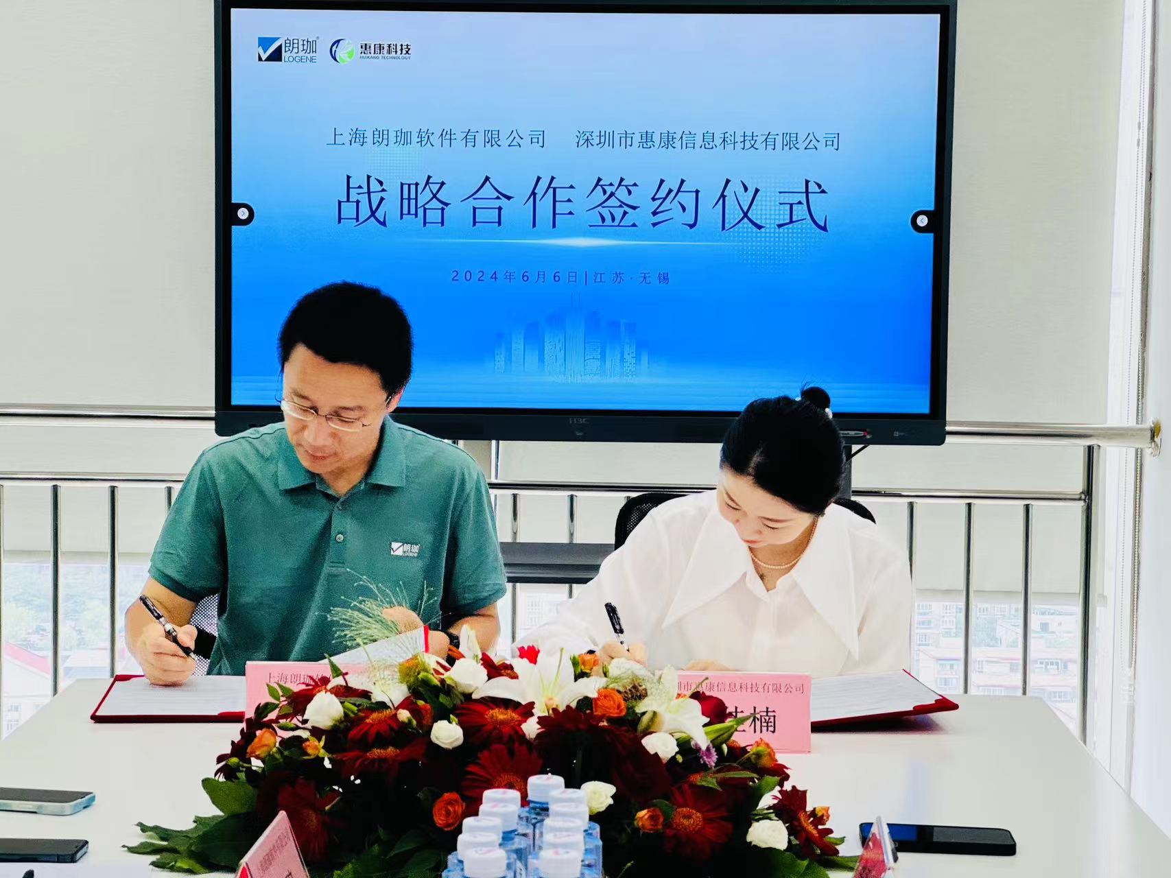 2024年66日,js3845金沙线路(朗珈软件)与深圳市惠康信息科技有限公司(惠康科技)在朗珈总部举行战略合作协议签约仪式。朗珈软件总经理吴川江、惠康科技副总经理翁佳楠代表双方签约,朗珈软件市场部总监陈洋、销售部总监胡碧、李俊瑞共同见证签约。