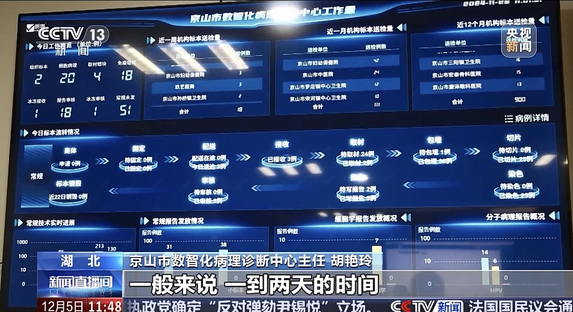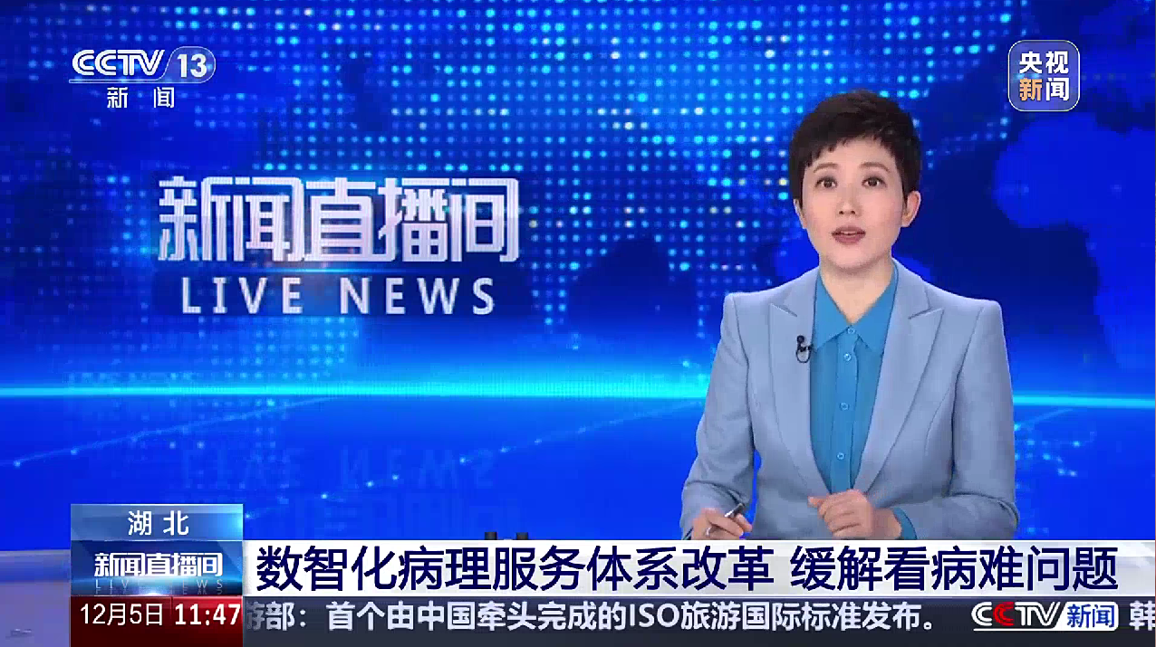 12月5日,央视《新闻直播间》以“数智化病理服务体系改革 缓解看病难问题”为题,介绍了湖北省数智化病理服务体系改革,通过运用数字化智能化技术手段,破解看病难题,让群众在家门口好看病、看好病。