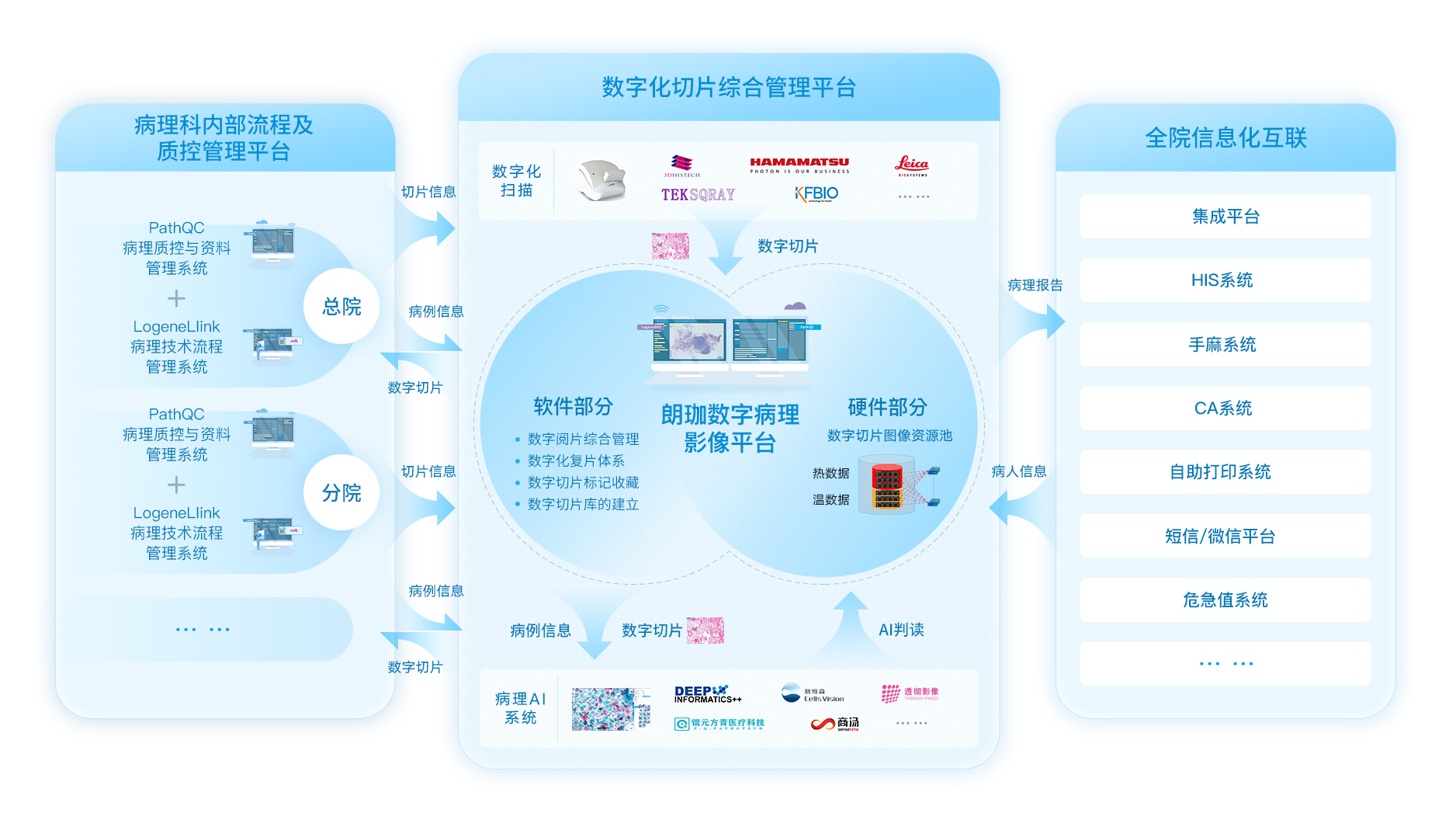 2019年初,深圳市宝安区病理诊断中心正式成立,以宝安区人民医院为病理诊断中心,覆盖集团二院(石岩人民医院)和集团三院(福永人民医院),同时由宝安区卫健委牵头签约多位病理专家作为特聘专家,由病理诊断中心的病理医生或特聘专家进行数字阅片、复片等协同诊断应用,构建病理诊断中心的病理会诊平台系统,打造病理诊断能力逐级下沉的信息化支持体系。