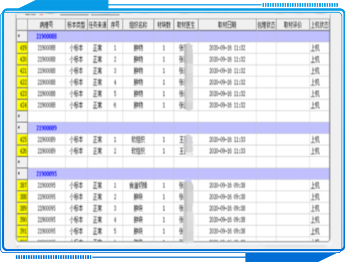 定制接口将玻片打号机连入网络,将切片明细列表直接传给玻片打号机打印。