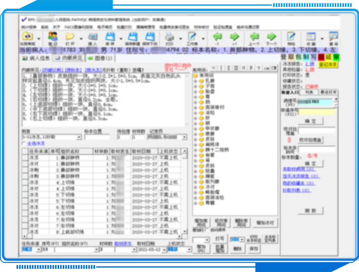功能价值:条码标签批量打印   切片交接管理   技术医嘱管理