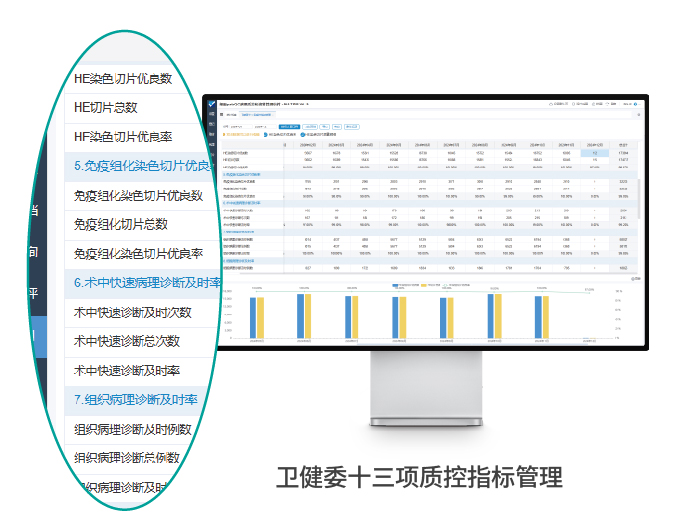 病理诊断质控管理,诊断内容智能提示、切片评价、报告时间管理、结构化报告等。